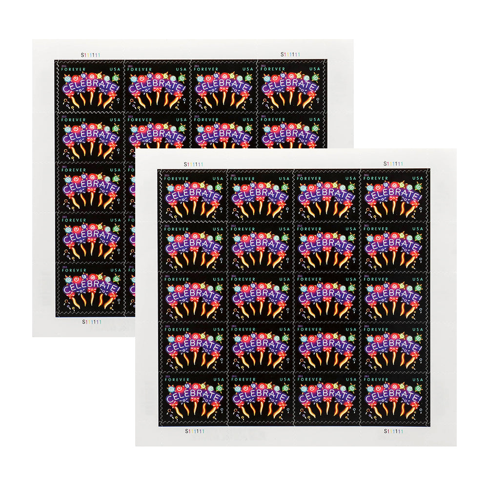 On September 9, 2015, in Kansas City, MO, the U.S. Postal Service will reissue the Neon Celebrate! special stamp (Forever First-Class Mail priced at 49 cents) in one design, in a pressure-sensitive adhesive (PSA) pane of 20 stamps (Item 586200).